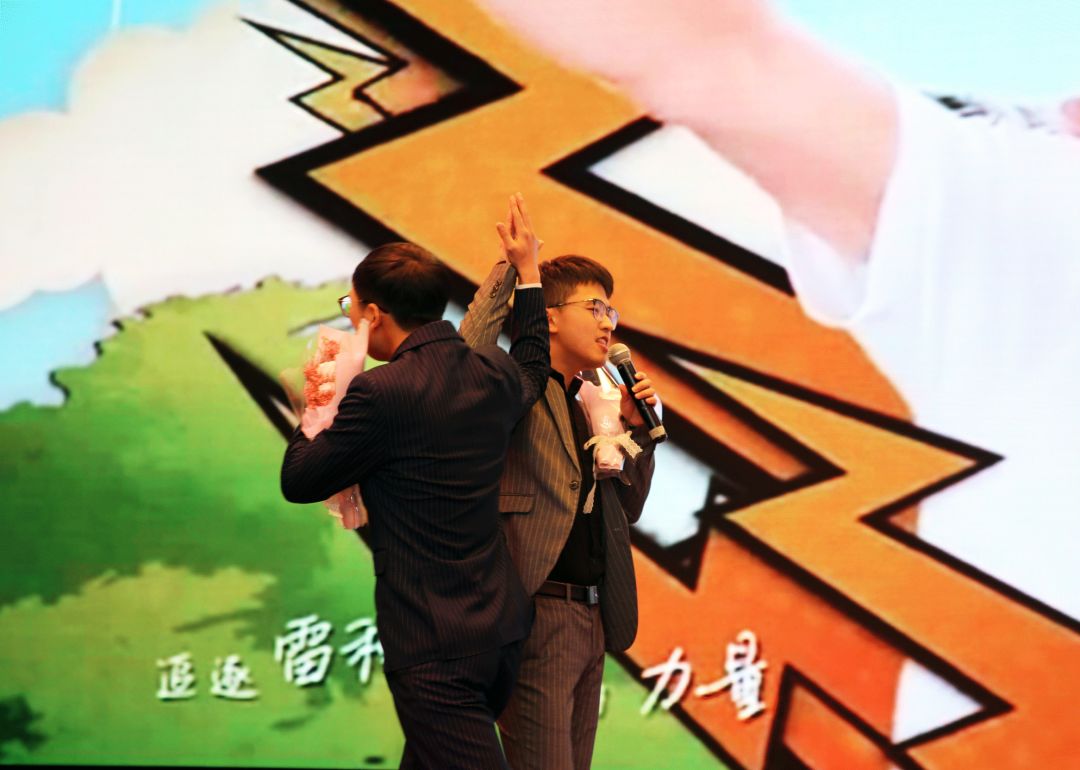 集团总裁助理袁忠和品牌建设总监刘强,最后也忍不住上台秀了一把洪亮的歌喉,赢得满堂彩!