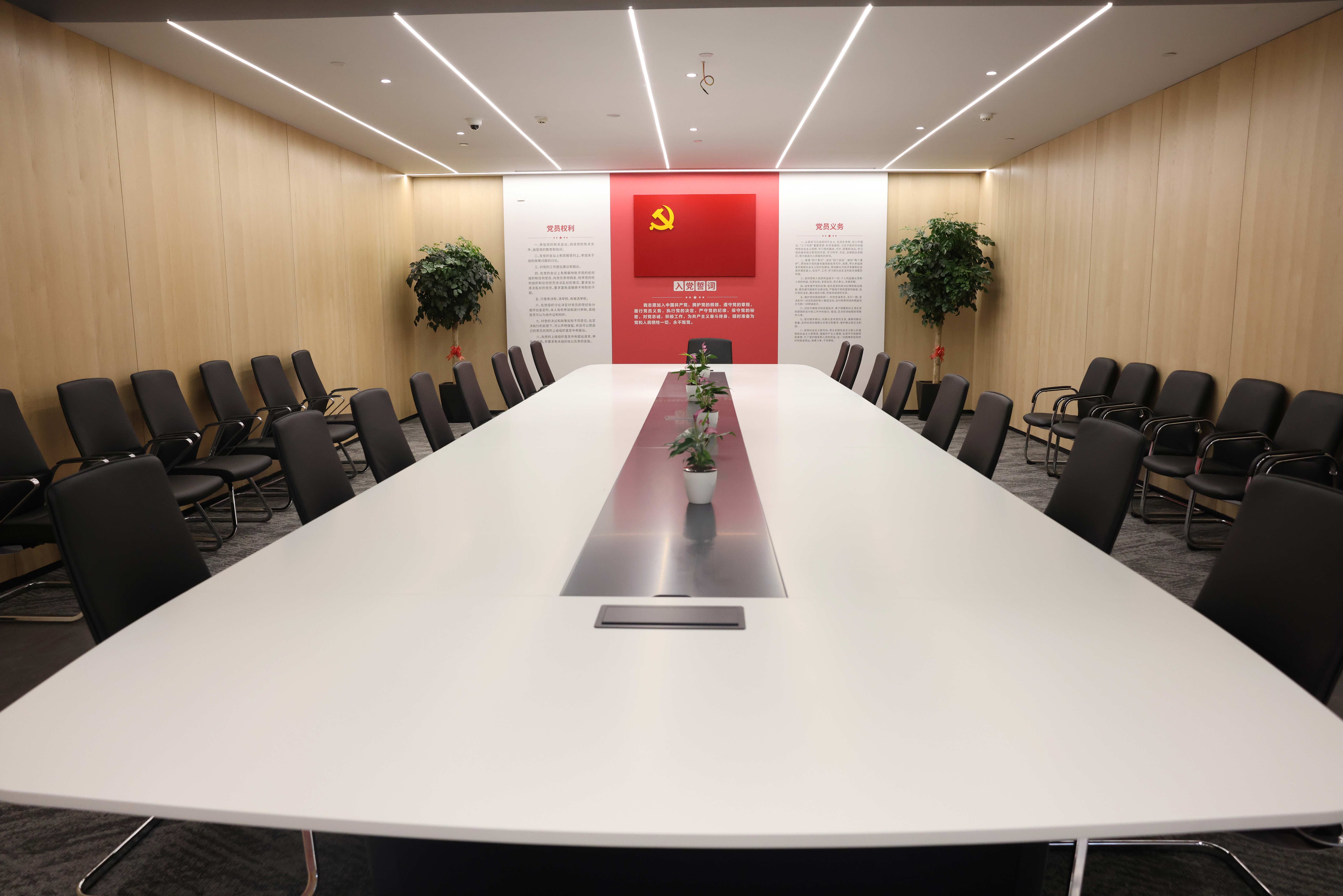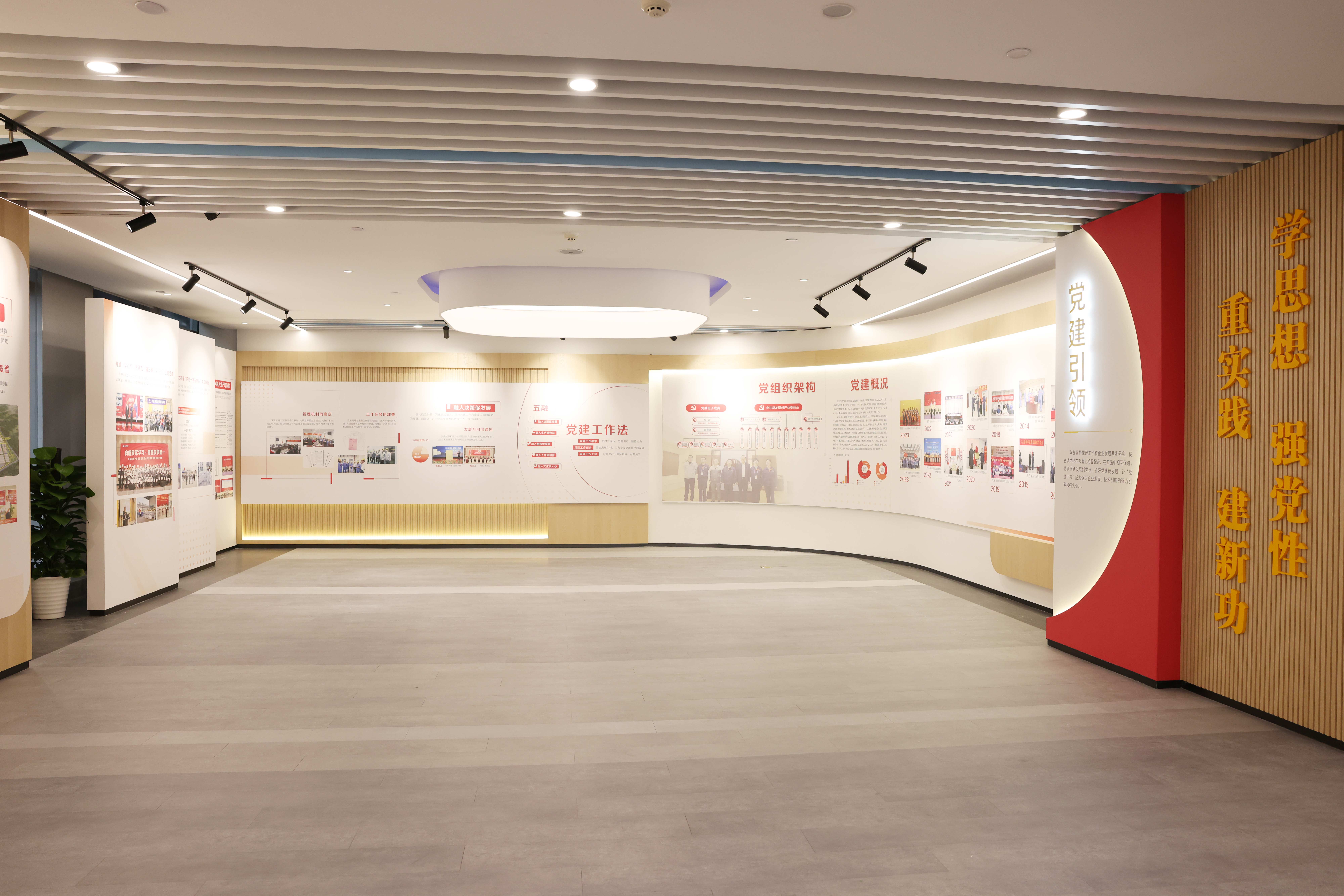 华友衢州产业园党群服务中心形成“1+N”的功能布局,以党群展示厅为主线,配有创业发展史展厅、职工书屋、红色教育中心、新闻直播间、“两代表一委员”工作室等区块,是集教育宣传、接待办事、会议培训、文化卫建等功能的开放式职工文化综合性党群服务阵地,实现红色元素可观可感,形成一道亮丽的“红色风景线”。