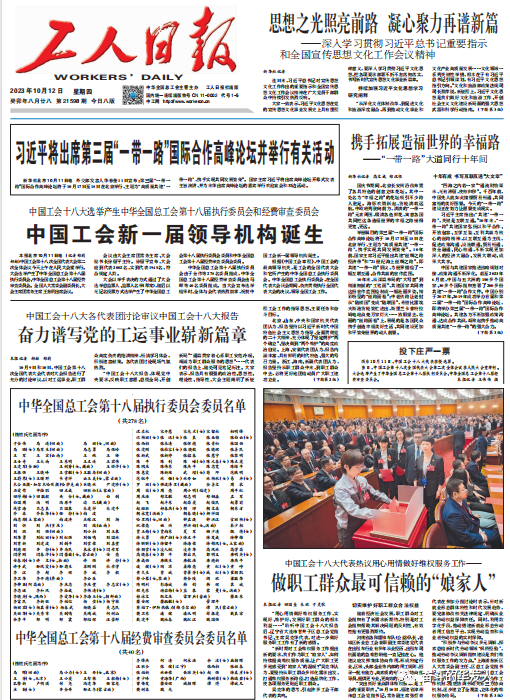 新的五年,新的征程。报告指出,各级工会、工人阶级要紧密地团结在以习近平同志为核心的党中央周围,以习近平新时代中国特色社会主义思想为指导,全面贯彻党的二十大精神,牢牢把握工运时代主题,发挥工人阶级主力军的重要作用,以高度的主人翁使命感和历史责任感,积极投身于实现“两个一百年”奋斗目标、实现中华民族伟大复兴的中国梦的伟大事业。